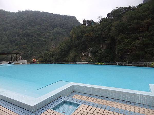 這次的花蓮跨年行程, 其中有一晚我們入住太魯閣晶英酒店, 搭配中信卡優惠, 山嵐客房一大床, 含雙人自助早餐, 優惠價3500左右. 飯店有游泳池, SPA池等休閒活動設施; 泳池也是無邊際設計的感覺, 可遙望天祥吊橋; 還可預約SPA泡澡, 可惜的是當天預約已滿, 所以屬貓也無緣享受... 另外還有交誼廳, 不過是付費使用的(印象中要上千元), 屬貓跟胖仔住的是優惠房價了, 所以也不能免費使用交誼廳...