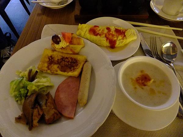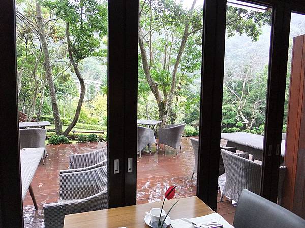 早上起床後在悅耳的鳥鳴聲中漫步前進西餐廳用早餐, 用餐環境寬廣, 也有戶外用餐區, 可惜的是被綿綿小雨打擾, 浪費了戶外區.