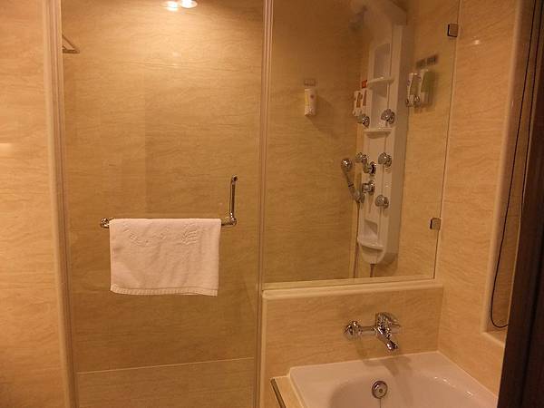 房間衛浴有按摩沖水, 乾濕分離, 還有開放的大玻璃, 現在飯店好像都很流行這樣的設計.
