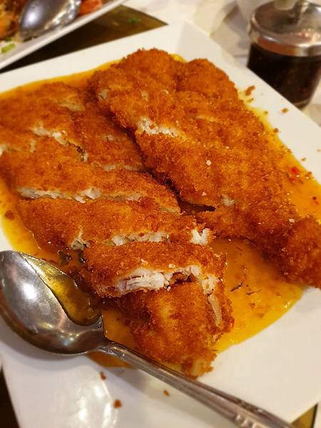 看起來超像炸豬排或雞排, 原來是炸比目魚, 好好吃唷, 很少吃熟比目魚, 這次滿驚喜的!