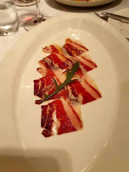 我的前菜- 西班牙伊比利火腿, 個人覺得西班牙伊比利就是要吃火腿, 而不是西班牙伊比利肉片, 也不是西班牙伊比利豬排, 就是火腿最回味最好吃! 本來是想吃皇家魚子醬, 想吃要再加價500, 但是當天已售完, 哈哈哈, 所以還是吃火腿吧~