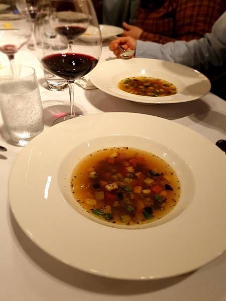 喝完湯品我喝了中間那支, 嗯... 個人覺得火腿跟湯品難以駕馭這支, 後來上牛排了, 馬上吃了2口肉再喝這支就ok啦.