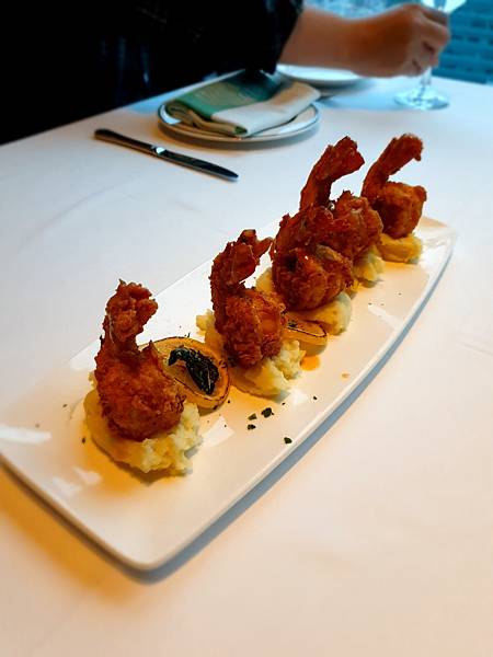 服務生推薦的前菜- 憤怒蝦 龍蝦奶油醬, 也是好吃, 口感Q彈酥脆, 下面還搭配薯泥, 整體滿意