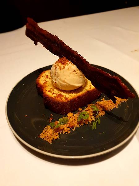 椰子磅蛋糕+花生冰淇淋, 還搭了黑糖培根! 老爸很買單, 都說吃不下了還一直吃, 果真舌頭最老實呢~