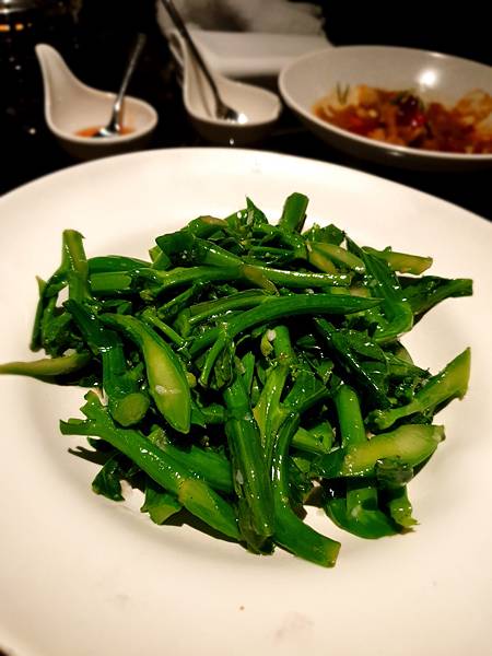 蒜炒芥藍, 口味口感也不錯, 就是老友習慣重口, 會覺得味道不夠, 好在她可以自己搭配口水雞的椒麻辣醬汁來滿足
