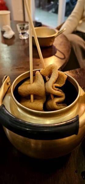 整體來說, 鍋類我覺得口味上沒有驚喜, 但是烤肉, 辣椒豬肉, 炸魚板串我滿喜歡的~ 用餐限時1.5小時, 但沒有強制請人, 至少我們聊了超過3小時 ^^ 開心!