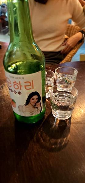 先上了套餐的水蜜桃水果燒酒, 水蜜桃味很足, 完全可以蓋過燒酒的酒精味, 我覺得滿好喝的~ 朋友因為有煩心事, 所以今晚滿需要酒的呀!!! 不能過量就是啦~~~