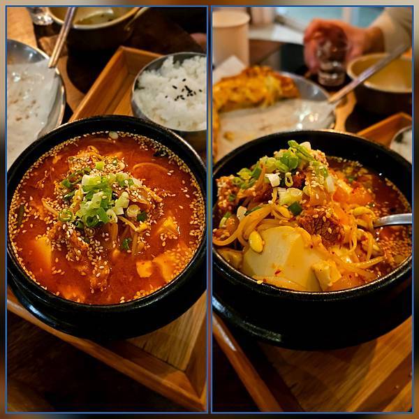 單點的豬肉泡菜豆腐鍋, 這個泡菜湯口味很平淡, 但豆腐是大塊的, 且豬肉是醃過肉塊, 口味上還可以