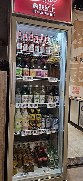 冰箱裡的酒類飲料自取, 另外掃QR CODE還有酒單可選其他酒類, 例如生啤, 柚子酒等